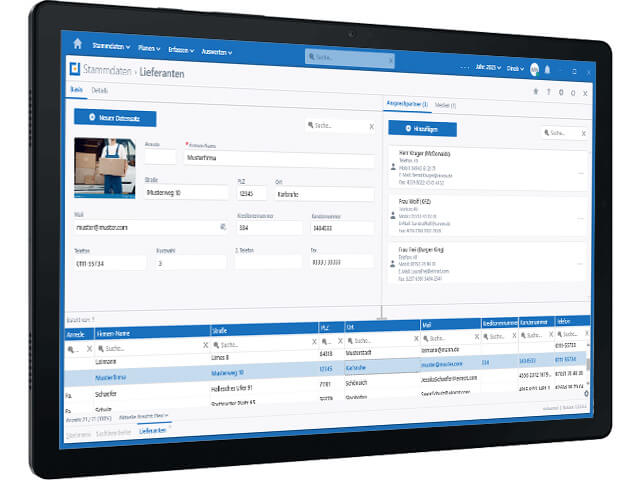 Es können externe Lieferanten und deren Ansprechpartner einfach erfasst und verwaltet werden.