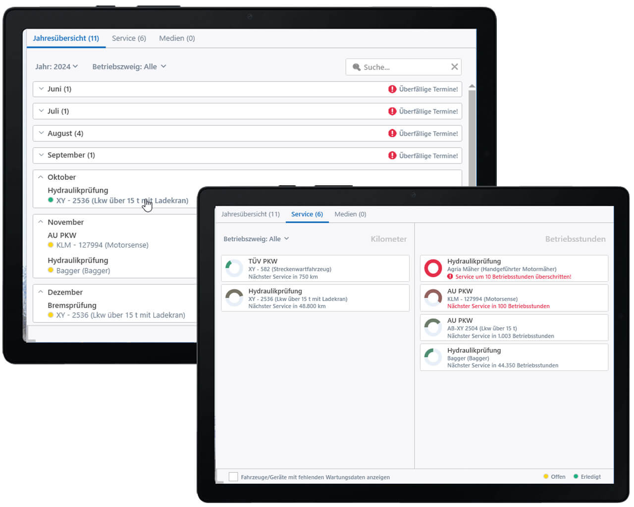 Behalten Sie alle wichtigen Prüftermine für Ihre Fahrzeuge und Geräte im Blick. Dank der übersichtlichen Darstellung können Sie sicherstellen, dass keine Wartung oder Überprüfung mehr übersehen wird.